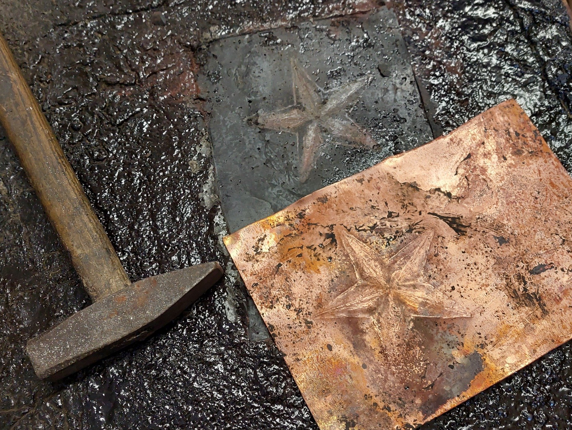 Hier vereinen sich unsere derzeitigen Projekte "Sepiaguss", "Sandguss" und "Interessantes Unterwegs Aufgesammelt" zu einem MetallStück.